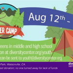 Spend time with a welcoming community that accepts you and everyone under the rainbow! The Diversity Center's annual Queer Camp is a three day, two night camp for youth ages 12-18 who identify under the LGBTQ+ spectrum, or are simply amazing allies. Click Here to register today! Limited space available! When: Friday August 12 - Sunday, August 14, 2016 Where: Mt. Madonna St. Park in Watsonville Cost: $125 Suggested donation; no one turned away for lack of funds. Questions? Email youth@diversitycenter.org … [Read more...]