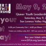 Join Us in Honoring and Celebrating Queer Youth Leaders! When: Saturday, May 9th, 2015 @ 5:30pm Where: San Lorenzo Valley High School, Felton Cost: Youth & Seniors = $10, Adults = $25 - $95 Click Here to purchase your tickets today! Schedule of Events: 5:30 pm Community Resource Fair 6:00 pm Catered Buffet Dinner 7:00 pm Awards Ceremony For more information, visit www.QYLA.org or call (831) 427-4004 or email us at info@QYLA.org Interested in volunteering? Contact QYLA to get involved with … [Read more...]