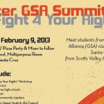 Saturday, February 9, 2013 1:00 – 5:00 pm / Pizza Party & Mixer to follow Harbor High School Multipurpose Room 300 La Fonda, Santa Cruz Meet students from Gay-Straight Alliance (GSA) clubs throughout Santa Cruz County – from Scotts Valley to Watsonville! Topics include: GSA Network “Fight 4 Your Rights” Workshop Learn about the FAIR Act GSA Updates from area high schools Triangle Speakers Panel Meet LGBTIQ/Ally Community Leaders: Student leaders from Queer Youth & Ally Council Shaun Ordinario, new STRANGE … [Read more...]