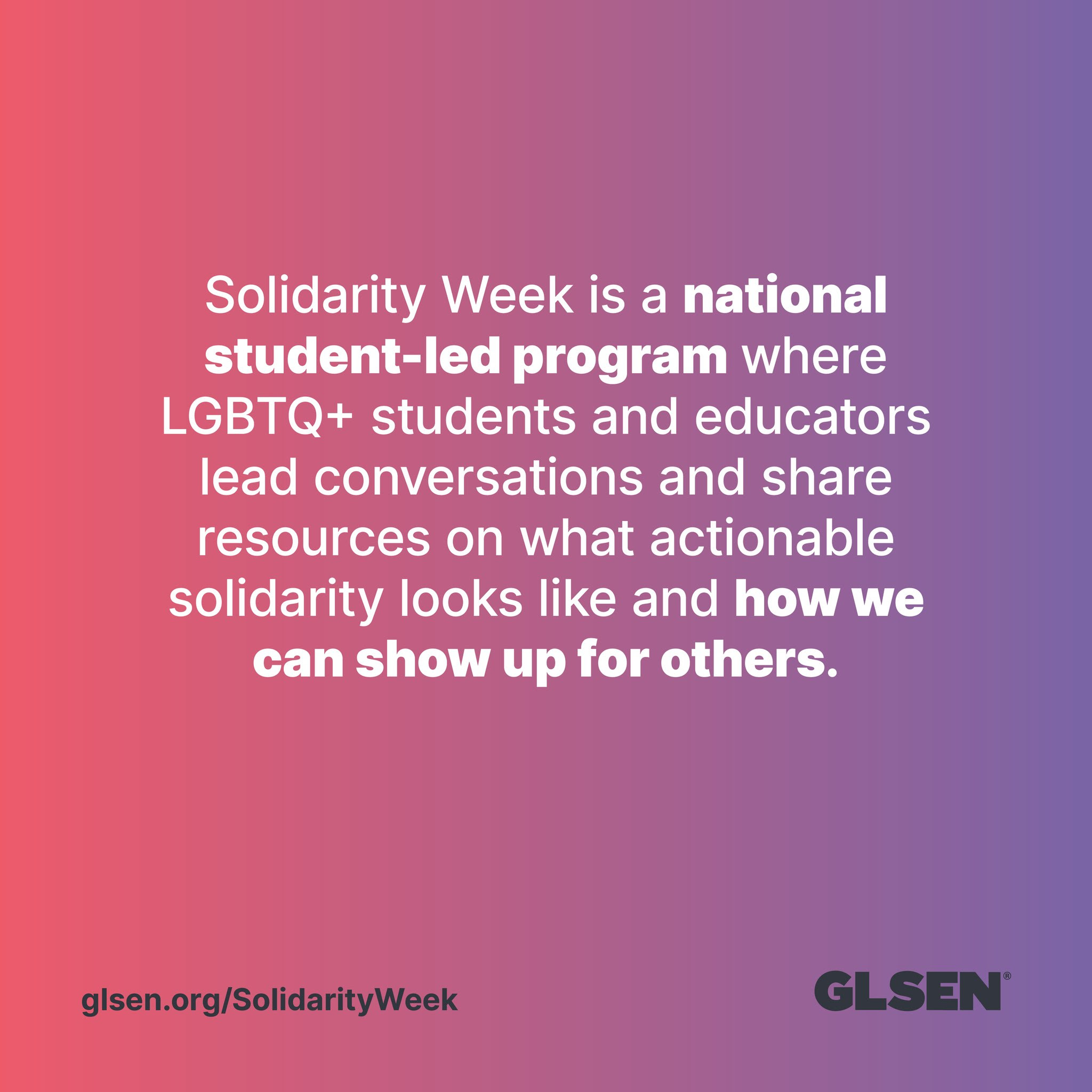 For resources, posts by the GLSEN National Student Council, and ways to take action visit glsen.org/ solidarityweek