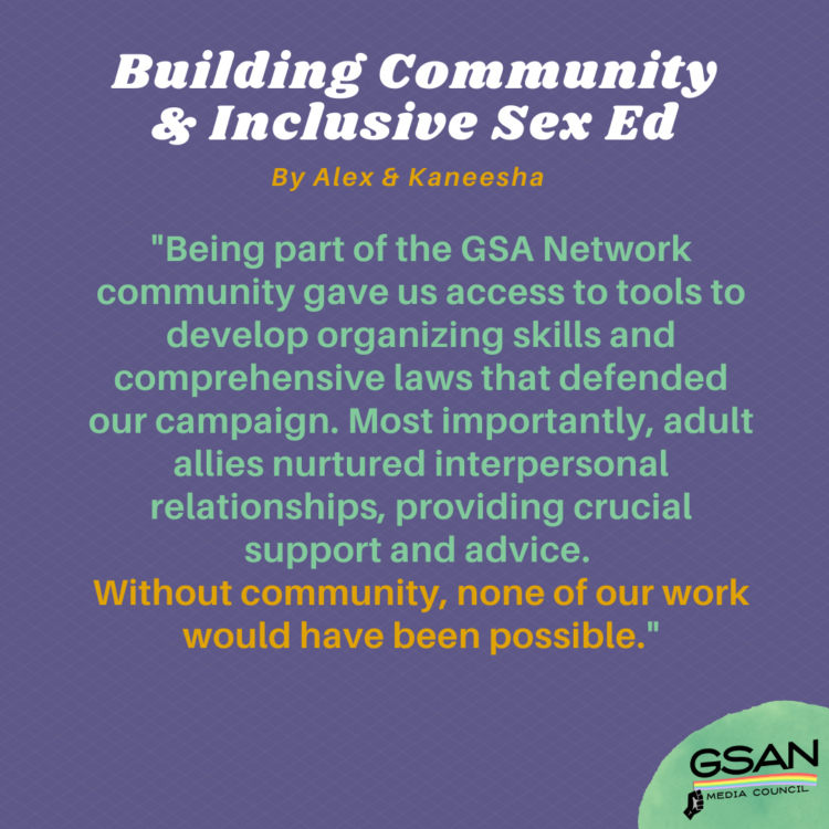 GSA Network: “Building Community and Inclusive Sex Ed” August 17, 2021 Read the full article at GSA Network