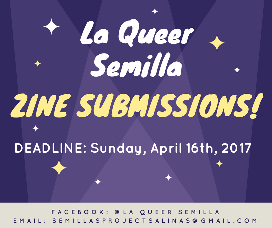 Please submit your words, art and stories of QTPOC resiliency! This project is focusing on La Resistencia in our Queer and Trans communities of color through. Visit La Queer Semilla for more information.