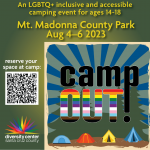 The Diversity Center is housing a Camp OUT for LGBTQ+ youth. The Camp Out is an LGBTQ+ inclusive and accessible camping experience for campers ages 14-18 at Mt. Madonna County Park. The Camp Out is free and we have space for 20 campers. When: Friday, August 4 - Sunday, August 6 Where: Mt. Madonna County Park Campers can reserve their space at camp by filling out this form: tinyurl.com/TDCcampout2023 … [Read more...]