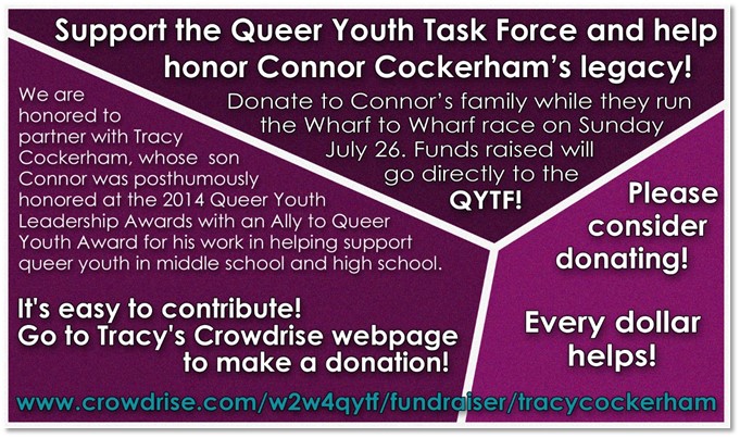 The 2015 Wharf to Wharf takes place on Sunday, July 26. Tracy and her family will be running in memory of Connor and to support the QYTF. Please consider donating! Every dollar helps!