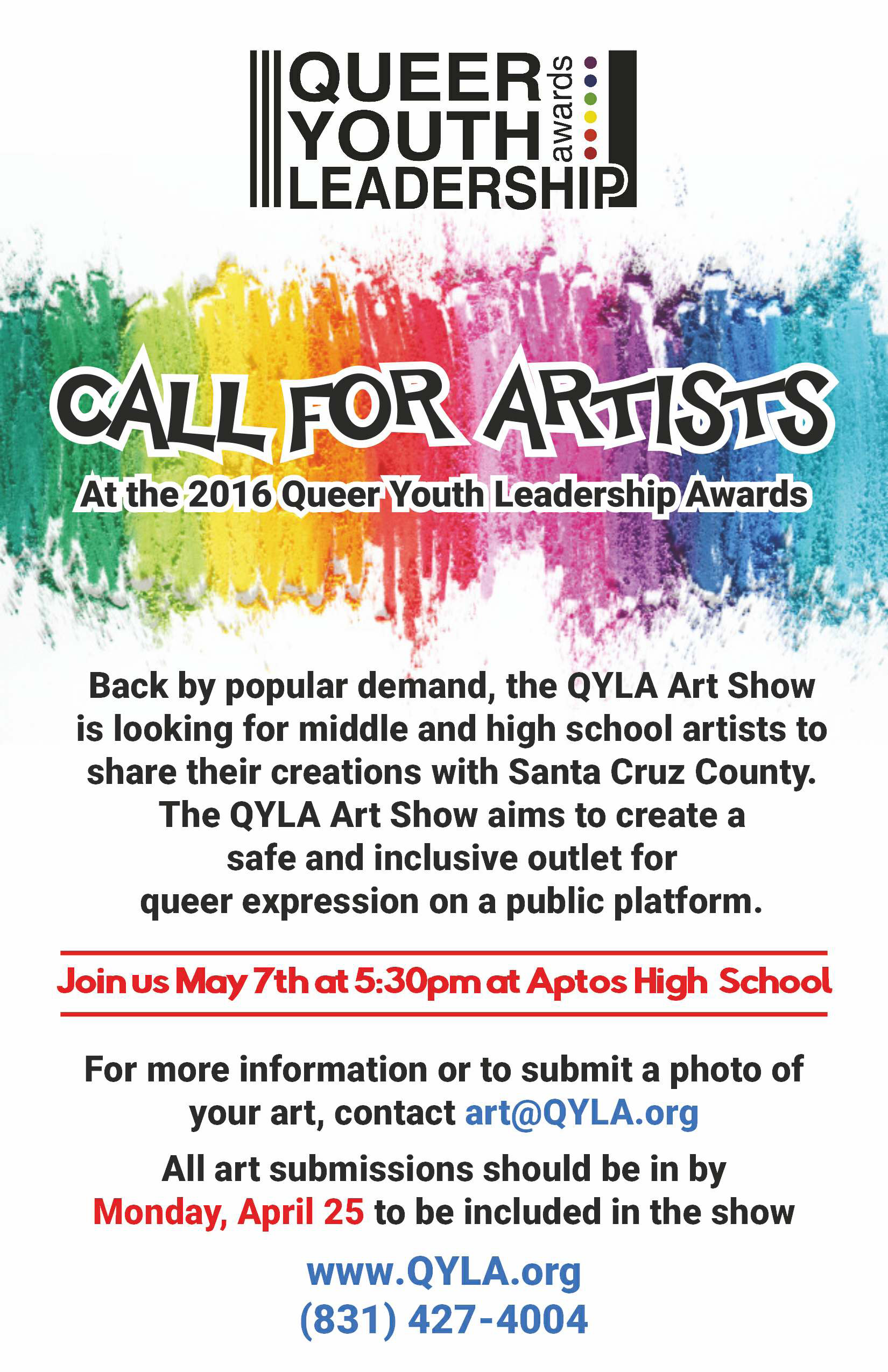 Back by popular demand, the QYLA Art Show is looking for middle and high school LGBTIQ & Ally artists to share their creations with Santa Cruz County. The QYLA Art Show aims to create a safe and inclusive outlet for queer expression on a public platform.