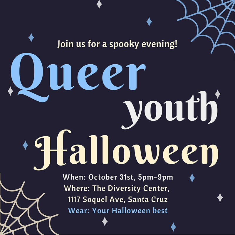 Join youth across Santa Cruz County and have some Halloween fun! This is a costume party complete with movies, music, candy and snacks! Sponsored by the Queer Youth Program at the Diversity Center and the STRANGE program at Encompass.