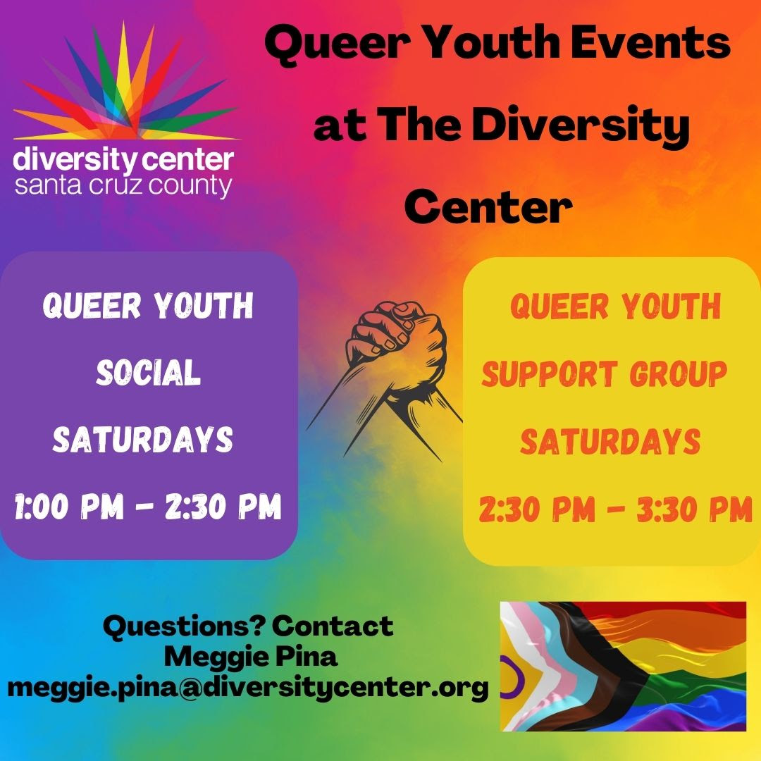 The Diversity Center Youth Program welcomes you to the center on Saturdays from 1:00 pm – 2:30 pm for a Queer Youth Social. Help us make decorations for Queer Prom, play games, make alien antennas!