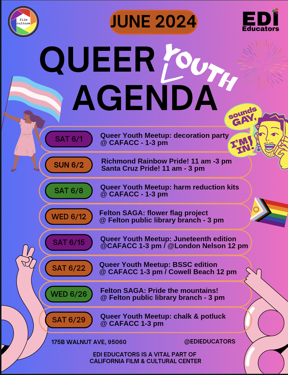 It’s pride month and we’re improving the Felton library teen room with some pride themed art. Join us in our paper flower flag creation, along with snacks and community building in a chill, welcoming environment.